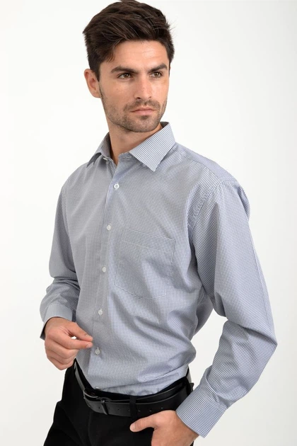 Удобная мужская рубашка в клетку сезон осень-зима цвет серо-белый