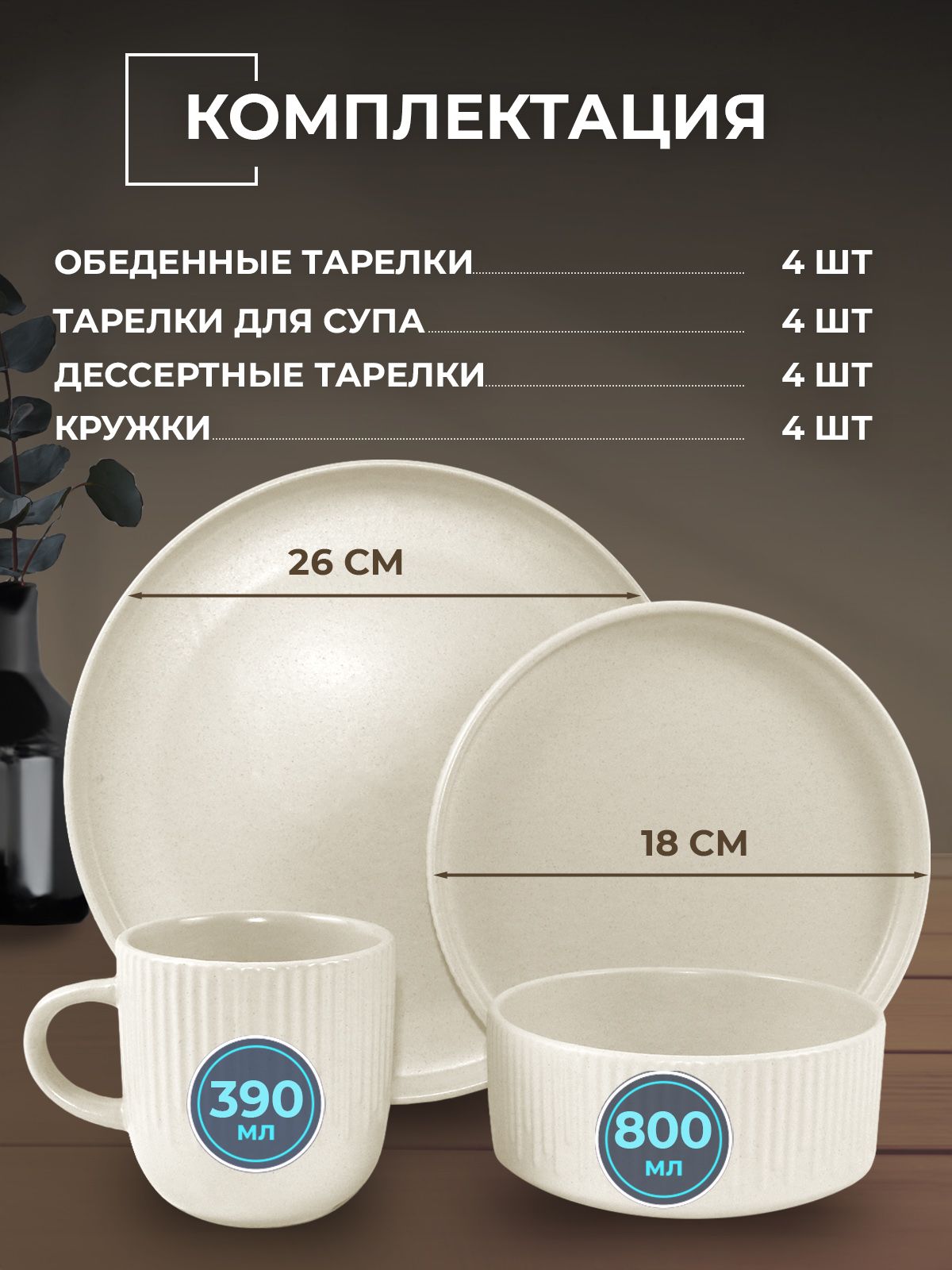 Набор фарфоровой столовой посуды на 4 персоны (16 предметов), цвет