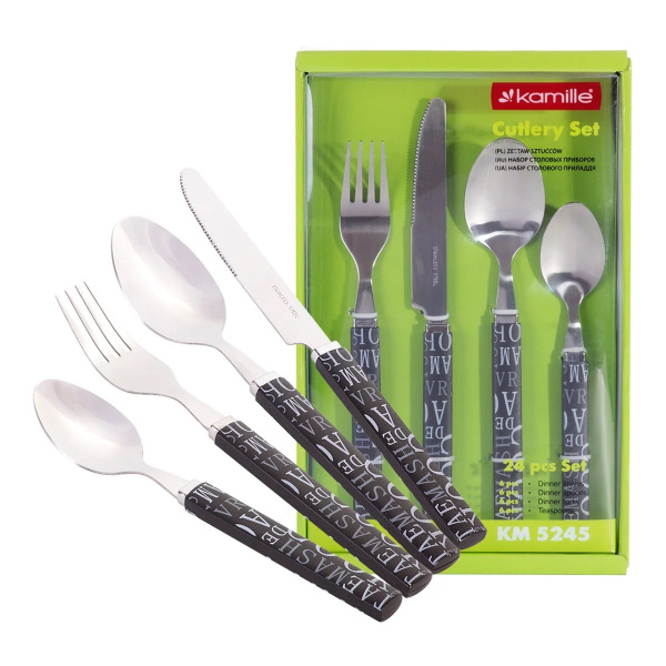 Набор столовых приборов 24 пр с пластиковыми ручками (чёрный) Kamille