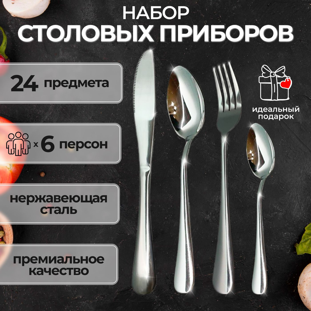 Набор столовых приборов из нержавеющей стали, 24 предмета