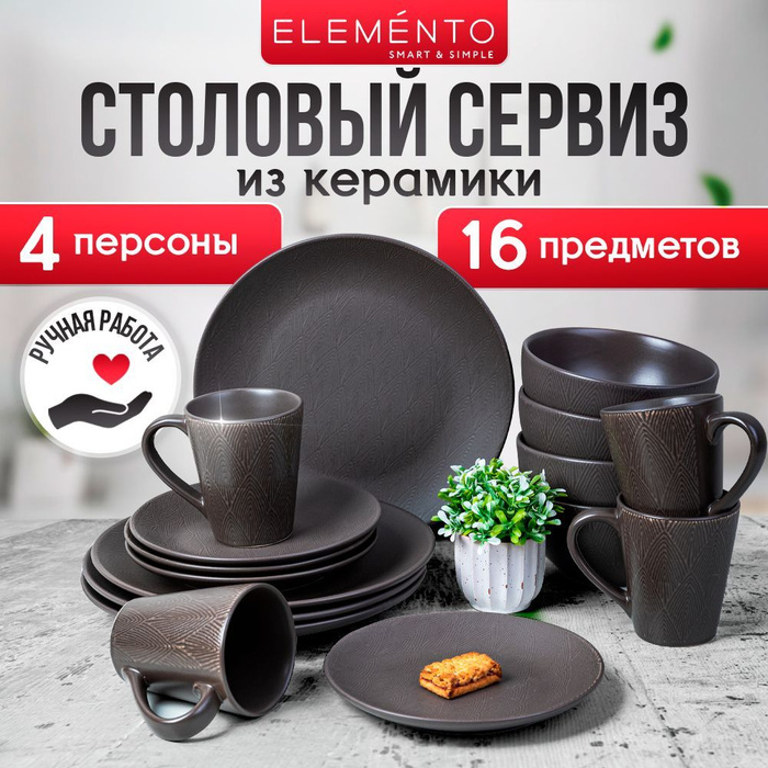 Набор посуды столовый ELEMENTO, на 4 персоны, 16 предметов: тарелки