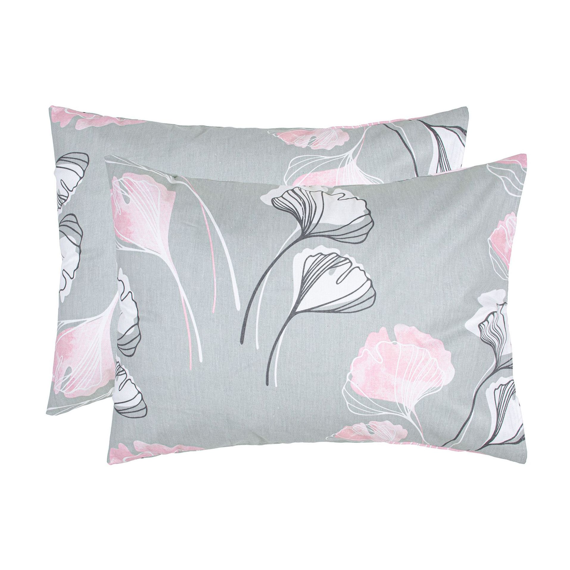 Наволочка бязевая Home Line Гинкго билоба, серо-розовая, 50*70 см, 2 шт