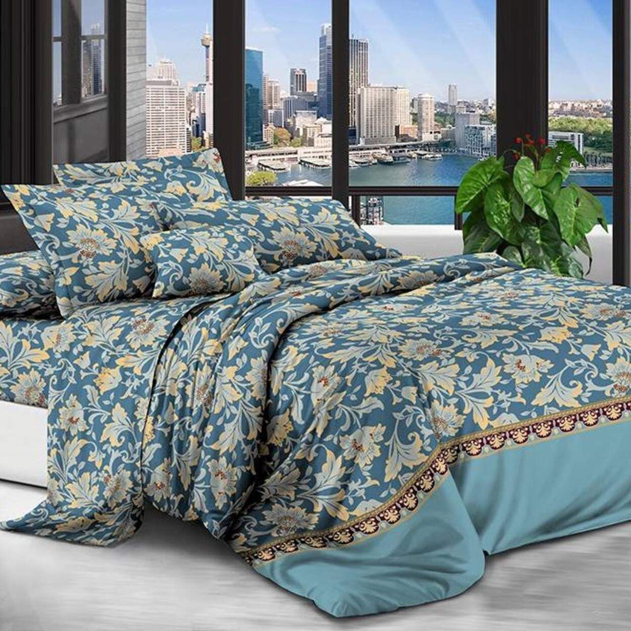 Комплект постельного белья двухспальный евро синий Бязь Полиэстер