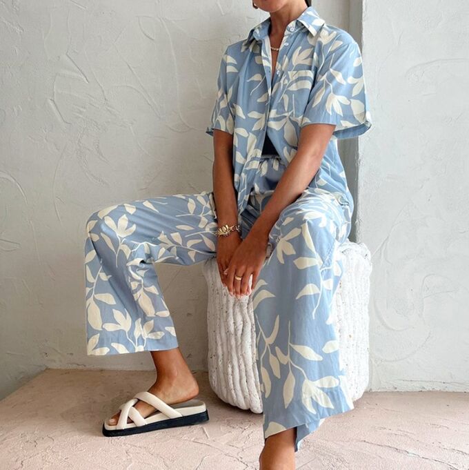 Женская пижама (рубашка с короткими рукавами + брюки), с принтом