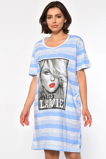 Ночная рубашка женская полубатальная голубого цвета с принтом ZIYO-M